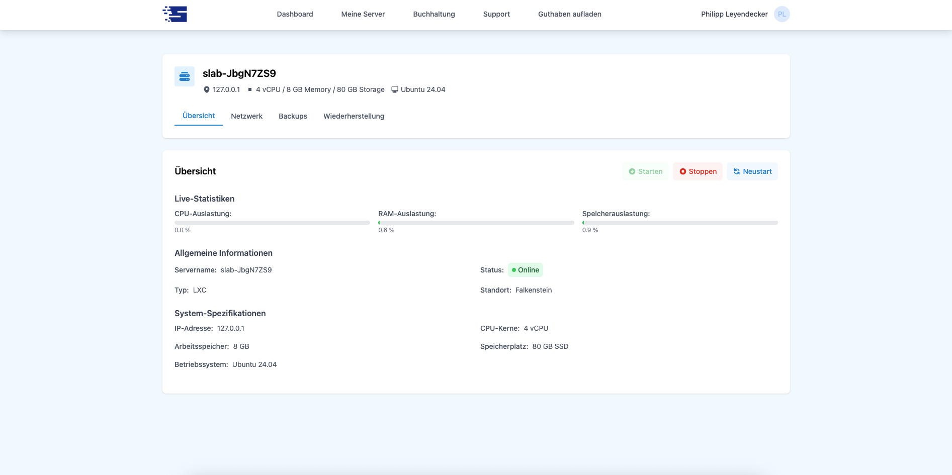Das neue Hosting-Panel für Entwickler und Teams – LXC, Backups & Netzwerke einfach verwalten, auf Prepaid-Basis. Made for growth.